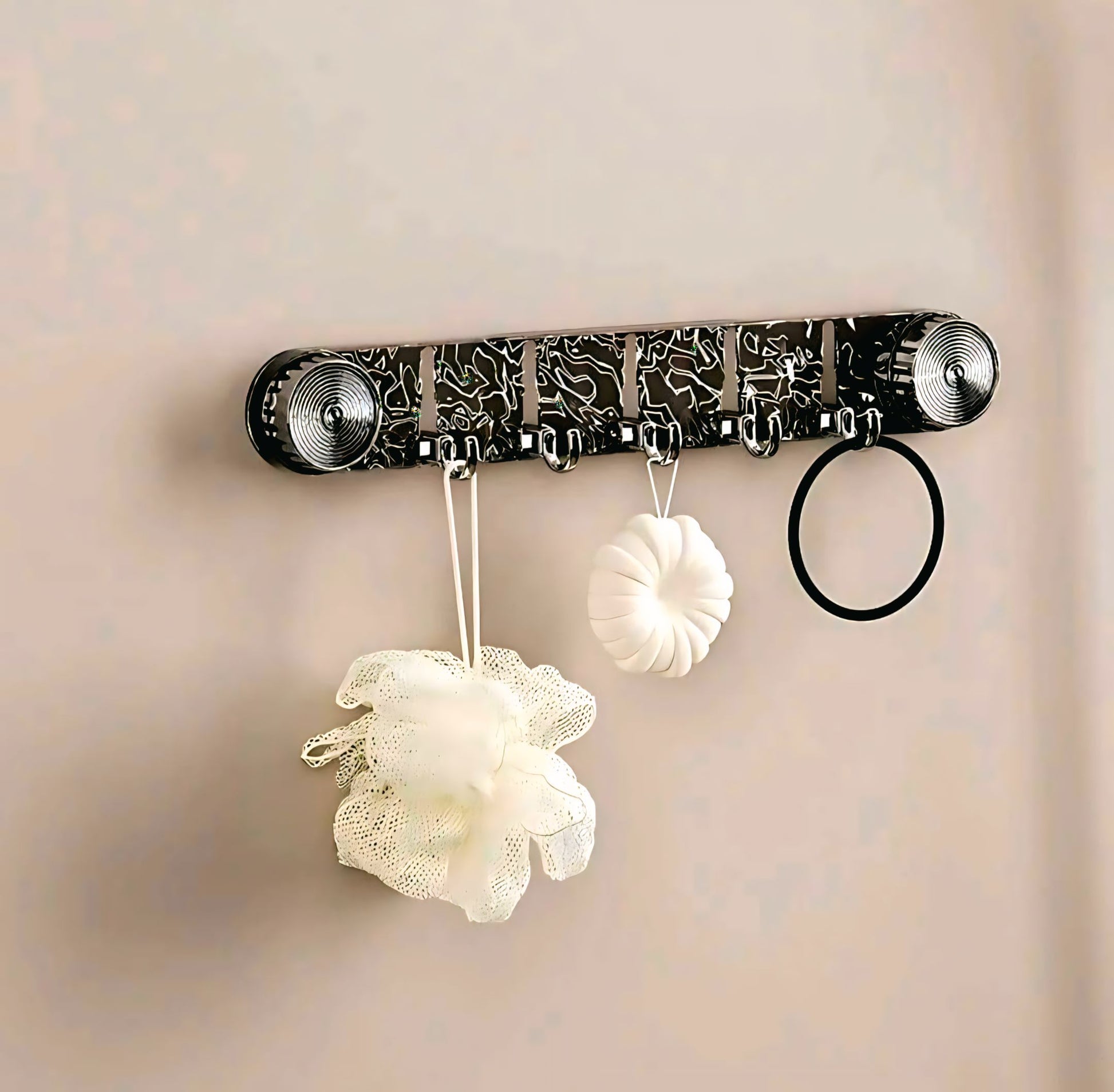 💪 Strong & Secure – 6 heavy-duty hooks with powerful adhesive hold all your essentials.